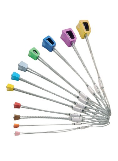 Дуже універсальні у використанні кістки на гнучких сталевих стрижнях. Їх форма, профіль і скульптура пропонують великі можливості для вбудовування. Округлі поверхні стикаються зі скелею в 3 точках, завдяки чому кріплення є стабільним і надійним. Використаний алюмінієвий сплав найвищої якості гарантує відповідну «м'якість», і в той же час є неймовірно структурно міцним і стійким до постійної деформації. Кольорове анодування дозволяє швидко розпізнати розміри.