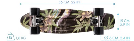 METEOR СКЕЙТБОРД ПЛАСТИКОВИЙ РІЗНОКОЛЬОРОВИЙ КВІТИ ДОШКА РИБКА чорний