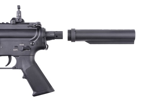 Репліка оснащена 22-мм верхньою рейкою RIS, розташованою під ручкою для транспортування, і регульованим прикладом. Завдяки висувному прикладу можна регулювати довжину репліки відповідно до комплекції та вподобань стрільця. Штатний пламегасник кріпиться на 14-міліметрову ліву різьбу, що дозволяє прикріпити на його місце шумоглушник.