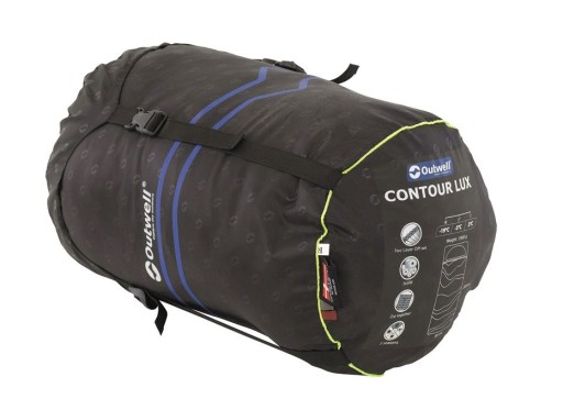 Популярний спальний мішок Outwell Contour Lux двошарової конструкції, наповнений синтетичним утеплювачем Izofill. Має знімний капюшон із вбудованою подушкою. Г-подібна блискавка дозволяє розстібати спальний мішок збоку і знизу і використовувати його як ковдру. Двосторонні міцні блискавки. Версія Contour Lux тепліша в порівнянні зі спальним мішком Contour - у ній на 400 грам більше утеплювача Izofill. Спальний мішок з функцією Reversible дозволяє використовувати його як у холодні, так і в теплі дні.
