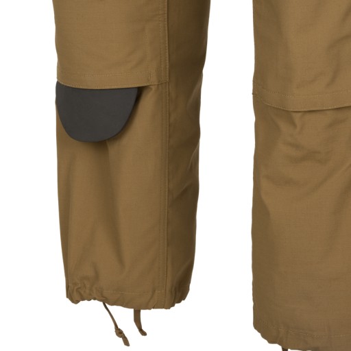 Вони виготовлені з матеріалу PolyCotton RipStop (60% бавовна, 40% поліестер), який характеризується високою стійкістю до стирання і розривів, а також легший і швидше сохне, ніж 100% бавовна. Крій брюк з підсиленнями на сідницях і колінах забезпечує тривалий термін служби. Штани мають шнурки для регулювання на талії. Крім того, на колінах є спеціальні кишені для наколінників.