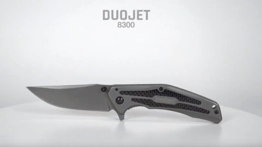 Kershaw Kershaw Duojet 8300 - це сучасний ніж EDC з нержавіючої сталі 8Cr13MoV, механізмом, що підтримує розгортання леза, сталевими накладками з вуглецевого волокна та міцною рамою-замком.