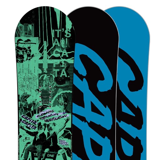- MICRO-GLASS Biax / Biax + MAGIC BEAN™ RESI / Оптимальна суміш скловолокна, легша за традиційну, спеціально призначена для молодих користувачів. Capita використовує екологічну смолу для всіх плит. Він забезпечує високу продуктивність зі зниженою потребою в теплі, тобто менше споживаної енергії в процесі виробництва сноуборду. Просочена високоефективною рослинною смолою MAGIC BEAN™ для забезпечення найсильнішої та найдинамічнішої їзди.