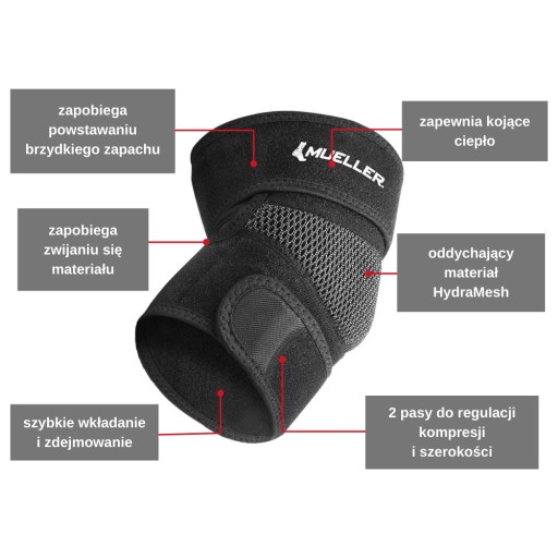На висоті ліктя смуга має спеціальний матеріал HydraMesh, який має сітчасту структуру. Забезпечує шкірі відмінну циркуляцію повітря. Він також чудово відводить вологу. Завдяки цьому пов'язка ідеально підійде для спекотних днів. Крім того, антимікробний бар'єр мінімізує ріст бактерій на матеріалі, які відповідають за утворення неприємного запаху. Це дуже зручна модель, яка забезпечить вам комфорт використання.