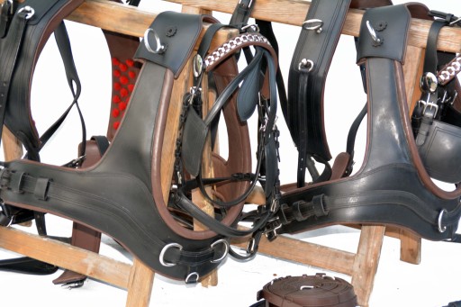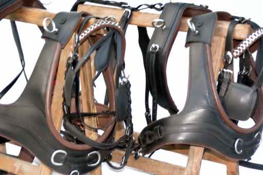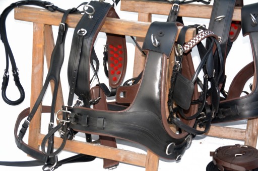 Французька упряж на пару коней, розмір FULL. Упряж виготовлений повністю з дуже якісної, добірної суцільнозернистої шкіри, дуже м'якої та приємної на дотик, з вшитою стрічкою у всіх елементах упряжі для зміцнення шкіри Профільовані груди з нагрудниками, анатомічно профільовані обхвати, анатомічні вуздечки в потилична частина і м'яка перенісся.Фурнітура з нержавіючої сталі, єдиний джгут такого типу на ринку, ідеально виготовлений.Рекомендую