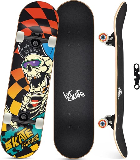 Міцний і міцний: дошка товщиною 10 мм виготовлена з 7 шарів канадського клена, максимальна вага скейтера до 100 кг, оснащений 5-дюймовими візками з алюмінієвого сплаву. Надійний для новачків і досвідчених