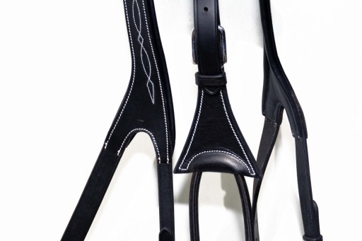 Нагрудний знак з мартингалом розміром повний. Нагрудник виготовлений на шорно-сідловій фабриці у Франції.Виготовлений з натуральної шкіри найвищої якості, дуже м'якої та приємної на дотик, в задній частині покритий м'якою шкірою для запобігання потертостей. Нагрудник застібається і регулюється за допомогою стійких пряжок, виготовлених з дуже якісної нержавіючої сталі.