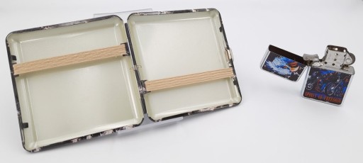 Акція поширюється на портсигар і набір запальничок. Вони зроблені з металу. Ідеально підходить для подарунка. Все упаковано в елегантну коробку з гарною підкладкою. Портсигар вміщує 20 сигарет і має розміри 9,5х9,5 см. Запальничка бензинова і має розміри 5,5х3,5 см. Розміри всього набору 19х14,5х4 см. Запальничка не заправлена бензином.