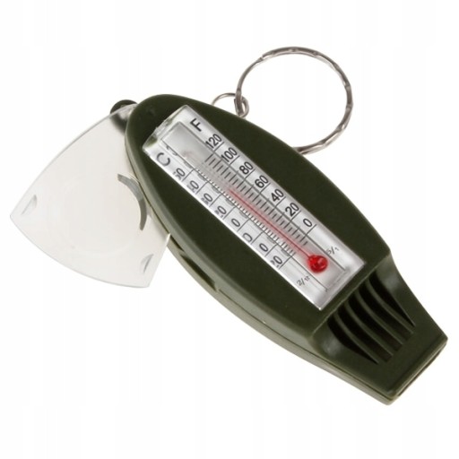 -Можна використовувати як свисток, збільшувальне скло, компас або термометр.