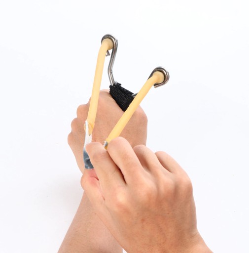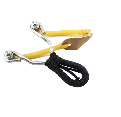Рогатка повністю виготовлена з товстої нержавіючої сталі. Ручка обмотана товстим шнурком, завдяки чому ідеально лежить в руці. Тятива виготовлена з міцної гумової гуми, а патронник зі шкіри.