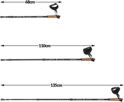 ІНДИВІДУАЛЬНЕ РЕГУЛЮВАННЯ - Завдяки плавно регульованим телескопічним палицям наші туристичні палиці легко транспортувати та зберігати. Надрукована сантиметрова шкала дозволяє легко регулювати довжину палиць відповідно до вашого зросту.