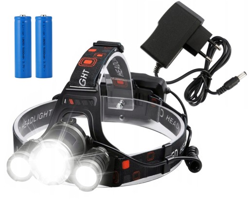 ⭐ Налобний ліхтар 3 x LED T6 CREE + зарядний пристрій ⭐