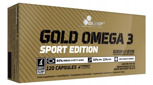 Як швидко та ефективно доповнити свій раціон омега-3 жирними кислотами? Відповідь на це питання знайшли фахівці фармацевтичної компанії Olimp Laboratories. Їхні знання та досвід у сфері харчових добавок дозволили за допомогою інноваційних технологій створити високоякісний препарат, який полегшує доповнення раціону кислотами Омега 3. Gold Omega 3 Sport Edition містить високоякісний концентрований холодноводний риб’ячий жир з вмістом 65% вміст Омега 3 жирних кислот, в тому числі кислот DHA і EPA, які важливі для серця, мозку, зору і кровоносної системи. Gold Omega 3 Sport Edition додатково збагачений вітаміном Е. Це надзвичайно потужний антиоксидант, який допомагає захистити клітини від окисного стресу.