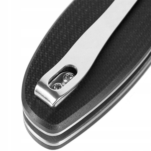 Накладки рукоятки ергономічної форми та нековзної текстури виготовлені з міцного ламінату G10 та пригвинчені до рами ножа гвинтами. Гнучка кліпса дозволяє зручно носити ніж, закріпивши його на поясі або на краю кишені.