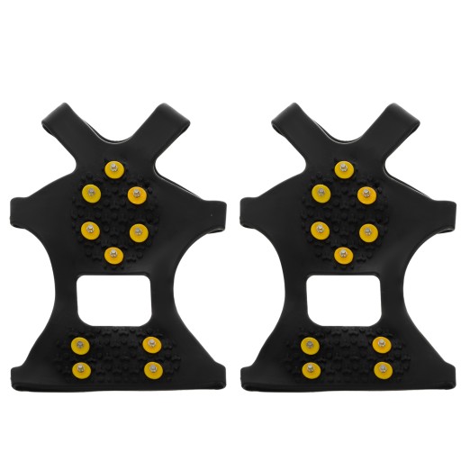 - СПЕЦИФІКАЦІЯ - колір: чорний/жовтий/сріблястий; матеріал: TPE/метал; кількість зубів в 1 раку: 10; розмір: XL 45-48; товщина гуми: 0,3 см; висота шипа: 3,5 мм; розміри плоского: 24,5 х 14 см; вага: 178 г; вага з упаковкою: 187 г.
