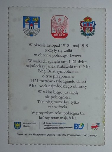 БІГ ОРЛІВ LWÓW - ПОЛЬСЬКА ПАМ'ЯТНА ПЛИТКА