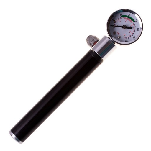 - Насос з манометром - суцільний, металевий. На відміну від останнім часом модних картриджів з вуглекислим газом, його можна використовувати багаторазово.