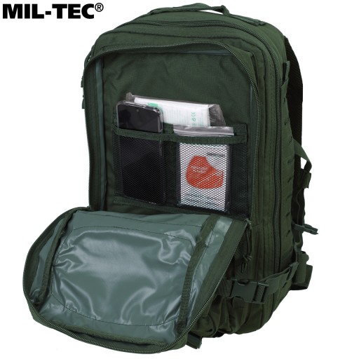 УВАГА! Предметом пропозиції є рюкзак Mil-Tec Assault Laser Cut оливкового кольору. Інші елементи використовуються для представлення функціональності.