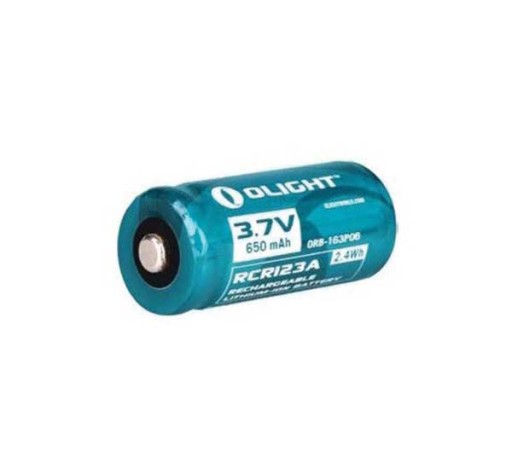 Літій-іонний акумулятор Olight RCR123 (16340). Має вбудований захист (PCB) від перезаряду та короткого замикання. Номінальна напруга одного акумулятора: 3.7V, ємність 650mAh.