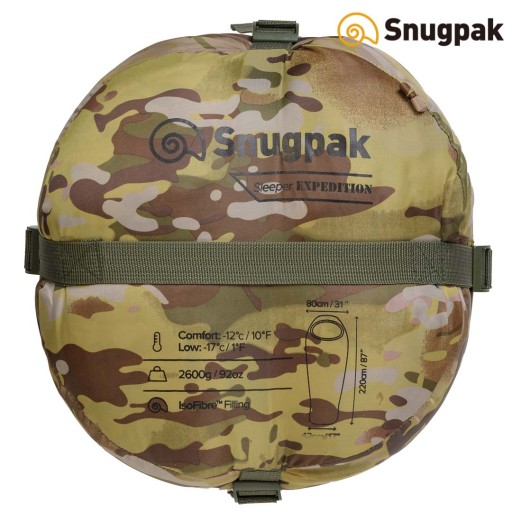 Модель SLEEPER EXPEDITION - дуже теплий спальний мішок, призначений для зими, весни та осені. Вага SLEEPER EXPEDITION становить 2,6 кг, а розміри після стиснення 33 х 28 см. Сендвіч-структура, дуже хороша оббивка та теплові замки забезпечують комфорт навіть холодною зимою. Екстремальна температура становить -17°C, комфорт -12°C, цих вражаючих параметрів Snugpak досяг завдяки використанню новітніх технологій. Спальний мішок оснащений додатковим утепленням ніг і більш товстим шаром ізоляції від землі. Використані матеріали захищають від вітру та дощу. Серія BASECAMP OPS гарантує хороші параметри, військову специфікацію та доступну ціну.