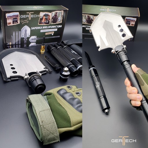 Набір для виживання, що зладається з багатоцільною лопатою та, оснащений набором інструментів, необхідний для виживання. shovel should be folded and unfolded чним чохлом її перенесення дуже зручно.