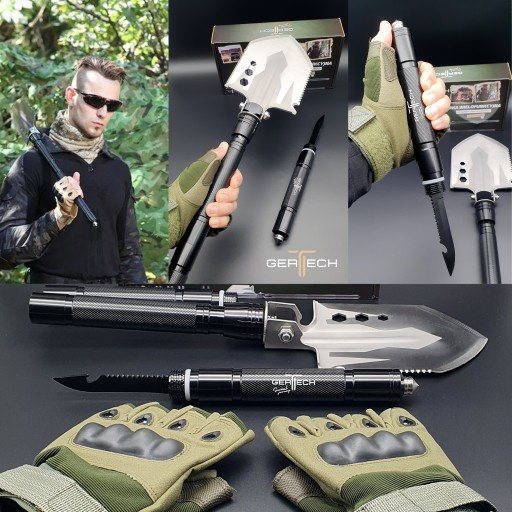 Набір для виживання, що складається з багатофункціональної лопати, оснащеної рядом інструментів, необхідних для виживання. Лопата повністю складається і розкладається - в комплекті з практичним чохлом її перенесення дуже зручно.