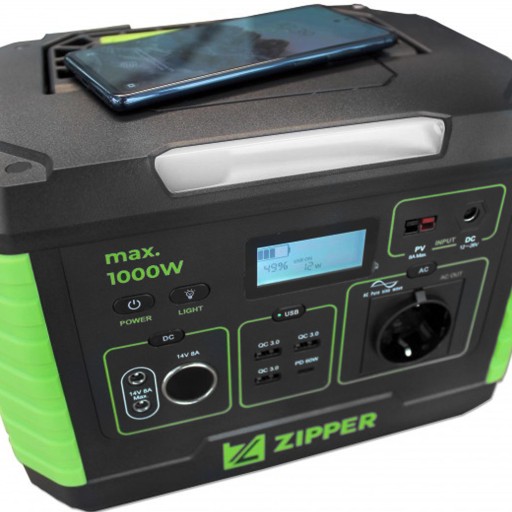Легкий портативний літій-іонний акумулятор потужністю 1000 Вт із бездротовою зарядкою ZIPPER ZI-PS1000