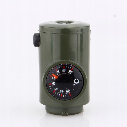 Набір свистків 7 в 1: свисток, компас, термометр, світлодіодний ліхтарик, збільшувальне скло, сигнальне дзеркало та невеликий контейнер.