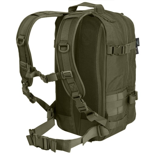 Спереду і з боків оброблені стрічками стандарту системи MOLLE/PALS, що дозволяє кріпити додаткові елементи спорядження, наприклад, сумки або сумки.