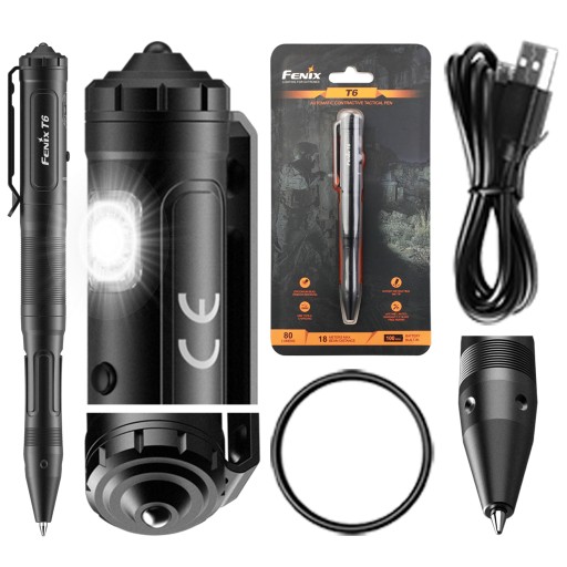 Тактична ручка Fenix T6 - це не тільки чудовий письмовий інструмент, але й ефективний засіб самооборони, оснащений знімним ліхтариком на 80 люмен.