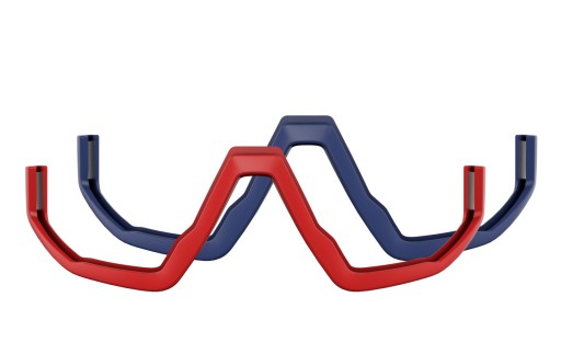 Запасні пари нижніх оправ Jawbone синього та червоного кольорів, які відповідають спортивним окулярам Fusion/Matrix.