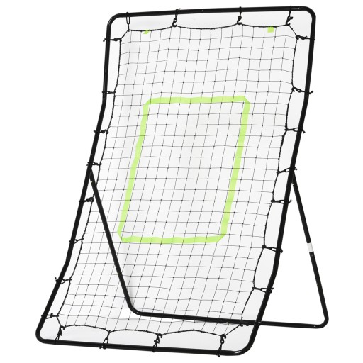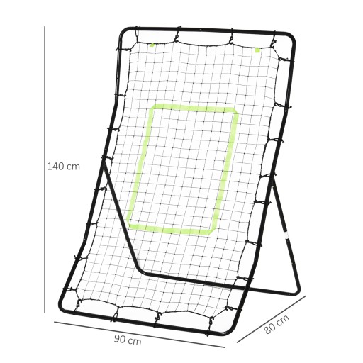Відбійник HOMCOM є ідеальним тренажером для кожного футболіста. Виготовлений із міцної поліетиленової сітки на сталевій рамі, цей відскок ідеально підходить для тренувань з м’ячем у інших видах спорту. Додаткову стійкість забезпечують кілочки, що входять в комплект. Крім того, нашу стрибаючу стіну легко переміщати. Але цей пристрій стане в нагоді не тільки амбітним гравцям. Також багато задоволення отримають діти та влучна стрільба батьків. Справжній універсал.