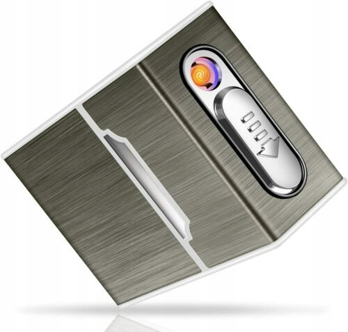 Портсигар із запальничкою, електронний, інтегрований, безполум'яна запальничка, перезаряджається, чорний