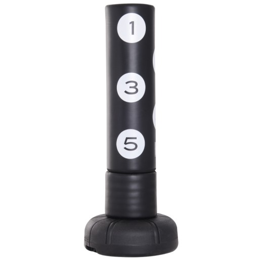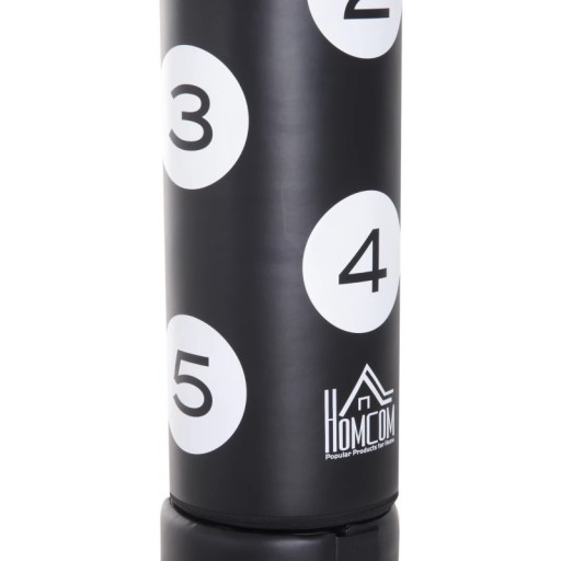 Висока якість боксерської груші HOMCOM означає, що ви можете тренуватися вдома, ефективно зосереджуючись на поставленій меті. Масивна основа виготовлена з пластику, що забезпечує стійкість при наповненні водою або дрібним піском. М'яка поверхня сумки міцна. Завдяки системі FLEX ваша боксерська груша поглинає удари ногами та руками, захищаючи від травм. Нумерація поверхонь допомагає відпрацьовувати гаки, удари руками та ногами. Він приємно простий і швидкий у збиранні та наповненні, тому новачки та професіонали можуть одразу розпочати тренування з боксу.