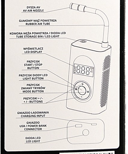 - завдяки двом світлодіодам також можна використовувати як ліхтарик, другий допомагає підсвічувати насосний клапан