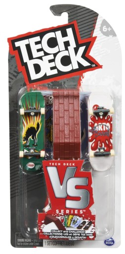 Вирушайте на вулицю з абсолютно новим пакетом Versus Series 2 від Tech Deck. Весь світ - це ваш скейт-парк із справжніми перешкодами. Кожен пакет Versus Series 2 включає два повністю зібрані грифи з вуличними аксесуарами, тож ви можете одразу розпочати розваги фрістайлу, а також картки для змагань, які можна збирати та битися з іншими скейтерами! Tech Deck Versus дозволяє почати з малого і кататися на офіційному міні-скейтборді з автентичною графікою від справжніх скейтборд-компаній. Потім зробіть все можливе і зберіть більше елементів. Робіть масла, ковзайте по виступах, шліфуйте рейки та робіть божевільні сальто в кінці! Використовуйте картки завдань, щоб виконувати різні трюки з грифа та змагатися з друзями. Витягніть картку - виграє той, хто виконає трюк! У серії Versus Tech Deck є все необхідне, щоб конкурувати з іншими любителями фінгербордингу. Fingerboard Tech Deck і Ramp Sets ідеально підходять для дітей і любителів скейтбордингу від 6 років. Якщо ви шукаєте справжню графіку скейтборду від автентичних скейтборд-компаній, Tech Teck має бути саме цим! Почніть з малого, переходьте до великого та збирайте їх усіх!