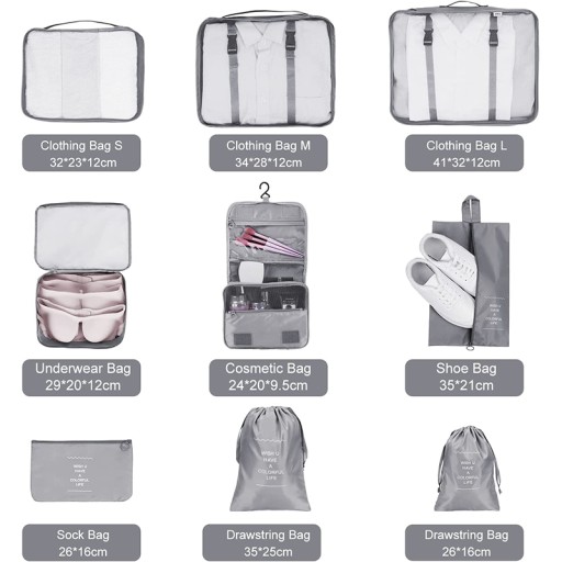 Набір валіз, органайзери для подорожей, органайзери для упаковки одягу, сумки для одягу, сумки для взуття, органайзер для подорожей, 9 шт.