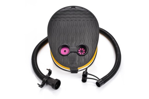 Оснащений шлангом і змінними наконечниками, ножний насос від Meteora. Призначений для відкачування (правий отвір) і відкачування (лівий отвір) повітря. Завдяки окремому всмоктуючому клапану він дозволяє повністю видалити залишки повітря, наприклад, у матраці під час здування.