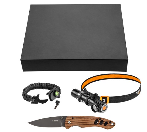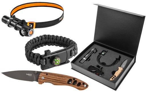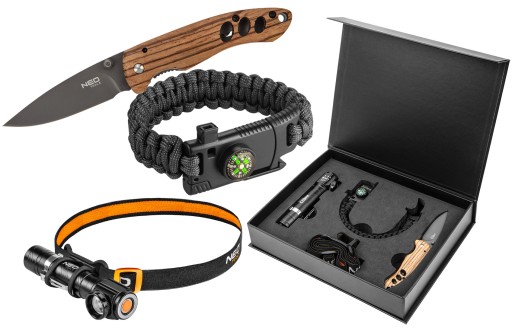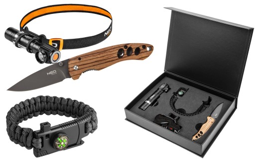 Набір з 3 елементів (налобний ліхтар 99-026, браслет виживання 5 в 1 63-140, складаний ніж) 63-033 від NEO - це набір, який включає, серед іншого: для налобного акумуляторного ліхтаря 99-026 NEO потужністю 10 Вт і максимум 800 люмен. Характеризується радіусом дії до 150 м і вбудованим світлодіодом Cree XML T6. Має зум і 3 функції освітлення: 100%, 50% і стробоскоп. Працює від літій-іонного акумулятора ємністю 1200 мАг 3,7 і USB-зарядкою за допомогою штекера під кришкою. Час зарядки - 4 години, час роботи - до 3 годин. Ліхтарик оснащений наголов'ям. Завдяки можливості зняття з ручок має більш широке застосування. Він пропонує кишеньковий затиск. У набір також входить браслет для виживання 5 в 1, який включає паракордову мотузку, кремінь, компас, ніж і свисток. Мотузка розвивається в довжину до 3,5 м, а її міцність визначається в 250 кг. Ширина браслета 26 мм, а окружність 240 мм. Розміри вкладеного кременю 5 х 20 мм. Браслет зелений. Третій елемент набору - ніж довжиною 16,5 см. Оснащений дерев'яною ручкою і лезом з нержавіючої сталі - він буде працювати в багатьох ситуаціях. Титанове покриття леза зміцнює його, а фіксатор леза впливає на безпеку використання. Затиск для кишені дозволяє зручно закріпити інструмент на одязі. Набір з 3 елементів бренду NEO призначений для туристів, любителів активного відпочинку і саморобок.