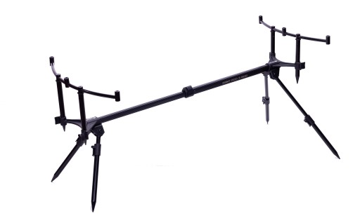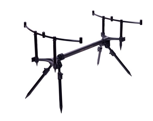 Універсальний штатив для вудилищ для тих, хто шукає стійкий штатив, який може вмістити до 3 вудилищ одночасно. Кут нахилу вудилищ можна регулювати декількома способами, в тому числі, регулюючи базбари, довжину ніжок і довжину підставки, що дозволяє адаптуватися до будь-яких умов на угідді. Rod Pod із сучасними вигнутими стрижнями для 3 вудилищ. Використане інноваційне рішення гарантує достатньо місця для великих котушок і розширює кінчики вудилищ, збільшуючи діапазон чутливості наборів.