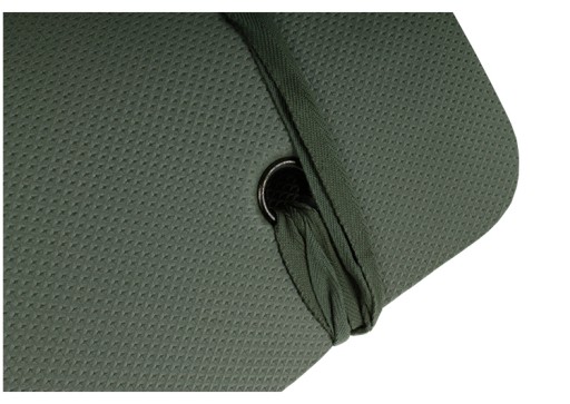 Крім того, на спальний килимок прикріплені стрічки, які полегшують згортання та кріплення спальника до рюкзака. Металеві люверси гарантують міцне кріплення стрічок.