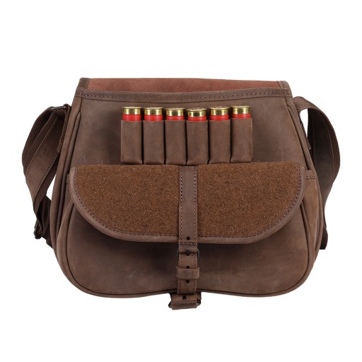 Мисливська сумка з комбінації шкіри та вовни Лоден. У комплект входить м'який широкий ремінь з регульованою довжиною, що забезпечує комфорт використання. Під основним клапаном знаходиться контейнер для дробових патронів місткістю 6 штук, містка основна кишеня і додаткова менша з місцем для 6 кулькових патронів. Все оздоблено елегантною шкіряною обробкою та міцними швами.