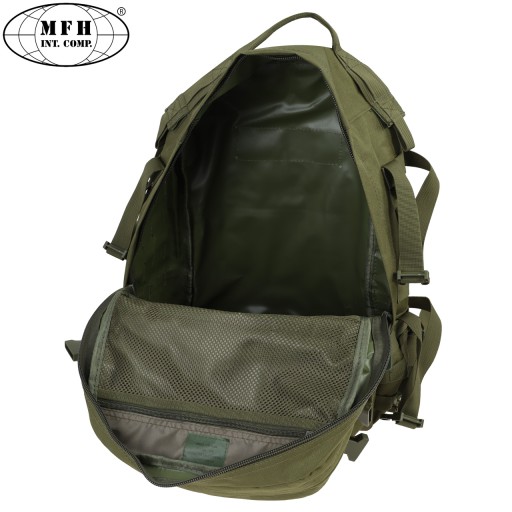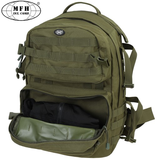 УВАГА! Предметом пропозиції є рюкзак US Assault II від MFH оливкового кольору. Решта елементів використовуються для візуалізації функціональності.