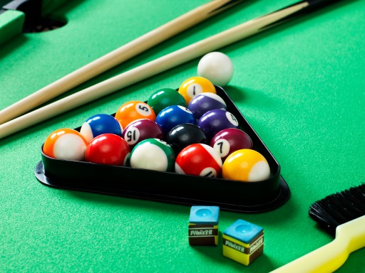 Інше обладнання: У набір входять два киї 92 см, 2 крейдяні кубики, набір з 16 кульок Ø38 мм, трикутник і ганчірка.