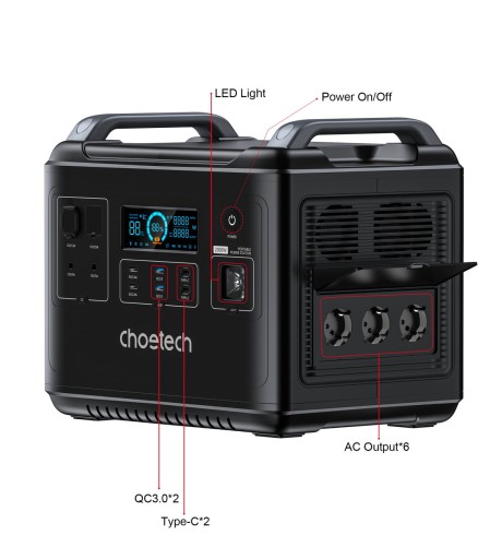 Вільний доступ до електроенергії поза домом? Портативна електростанція від Choetech забезпечує доступ до змінного струму потужністю до 2000 Вт. Цей універсальний пристрій також гарантує безперебійну роботу великих пристроїв, таких як ноутбук, телевізор, дрон і холодильник, що робить його ідеальним рішенням для далеких подорожей. Для всіх любителів «зеленої енергетики» станція також може працювати від сонячних батарей. Ви можете працювати далеко від електромережі, не відмовляючись від електрообладнання. Станція має рідкокристалічний дисплей, на якому відображається поточний заряд батареї, звіт про параметри, температура та потужність зарядки.
