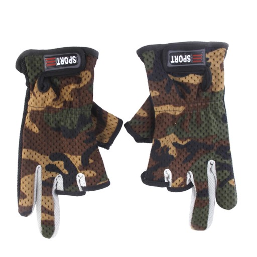 Рибальські рукавички проти ковзання, 3 нижні пальці, 1 пара, камуфляж