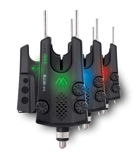 M-Bite - це карпові сигналізатори найвищого класу, доступні в комплекті з бездротовим блоком управління. Оснащений унікальною системою візуальної сигналізації з використанням світлового логотипу на передній частині корпусу та плавної світлодіодної лінії. M-Bites мають 6-рівневий регулятор гучності, чутливості та тембру за допомогою практичних ручок, підсвічуваний свінгерний вихід і гвинтові вуха. Разом із блоком керування вони забезпечують бездротову передачу сигналу 1:1 і досить вражаючий радіус дії приблизно до 200 м.