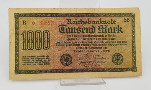 Старовинна банкнота 1000 марок Німеччини 1923 року