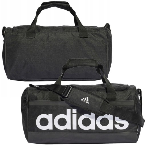 Тренувальна сумка Adidas класичного чорного кольору з великим логотипом виробника спереду. Зовнішня частина та підкладка виготовлені з 100% високоякісного переробленого поліестеру, що сприяє захисту навколишнього середовища. Основне відділення з меншою відкритою кишенею та окремим відділенням, наприклад, для взуття, дозволяє легко розділити речі, які ви носите. Модель оснащена довгим регульованим ременем із захисною наплічником і двома коротшими ручками для зручності носіння сумки в руках. Сумка Adidas Essentials Linear Duffe — ідеальне рішення для упаковки необхідних речей для тренувань або короткої подорожі. Має дві зовнішні бічні кишені, в тому числі одну сітчасту, що дозволяє відокремити, наприклад, мокру футболку. Крім того, сумка оснащена водонепроникним матеріалом на дні, який захищає від потрапляння вологи всередину та полегшує очищення матеріалу.