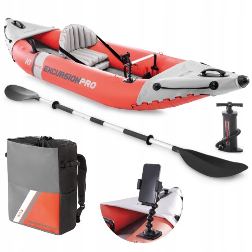 Байдарка EXCURSION PRO від INTEX одномісна, в комплект входять весла і насос. Призначений для поїздок на риболовлю. Оснащений тримачами для вудок і тримачем для додаткового обладнання, наприклад, GPS або ехозонда.